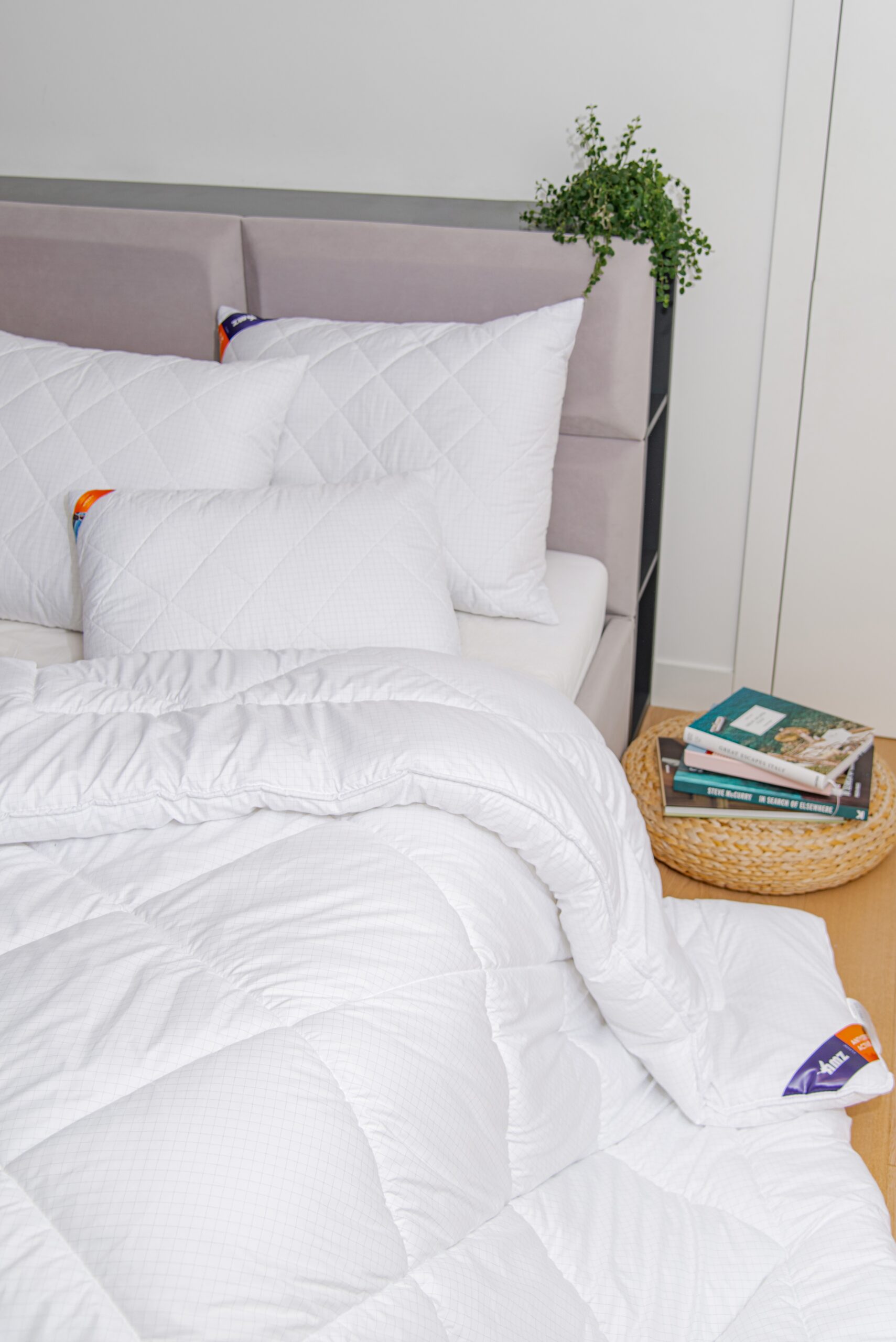 Poduszka uszyta z trójwarstwowej pikówki. Na jej wyjątkową puszystość, wyporność oraz łatwość w użytkowaniu składają się aż trzy warstwy: tkanina pokryciowa, włóknina, wigofil. Posiada zamek błyskawiczny umożliwiający regulację wysokości oraz twardości.