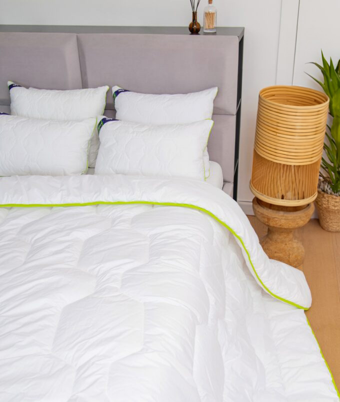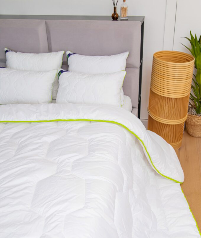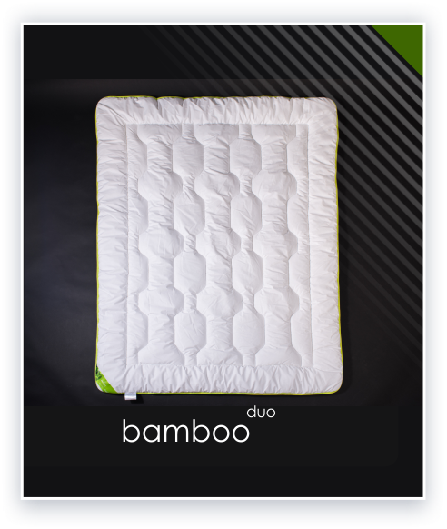 Kołdra zimowa typu duo – są to dwie kołdry złączone z sobą na krawędziach. Wypełniona materiałem DreamFill z drobnych spiralnie skręconych włókien poliestrowych pokrytych silikonem, dzięki czemu są bardziej puszyste oraz dłużej zachowują swój pierwotny kształt. Włókno posiada bardzo dobry współczynnik termoizolacji, zapewniając ciepło przy zachowaniu niskiej wagi wyrobu. Optymalna cyrkulacja powietrza pozwala ciału oddychać i optymalizować temperaturę podczas snu. Materiał pokryciowy to innowacyjna tkanina, łącząca najlepsze cechy bawełny i bambusa. Bawełna zapewnia miękkość, a bambus nadaje tkaninie aksamitności oraz właściwości antybakteryjnych i antygrzybicznych.