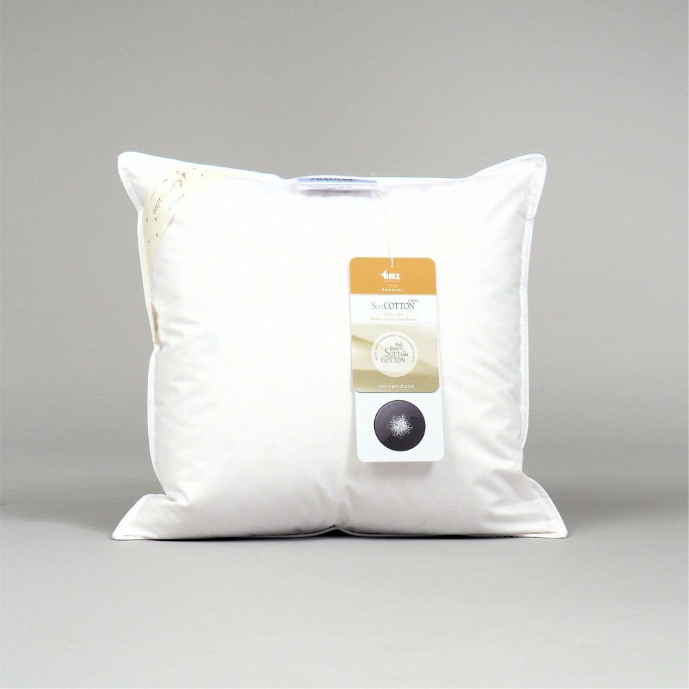 Poduszka jest jednokomorowa, co przekłada się na umiarkowaną wysokość. Wykończona bizą.