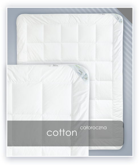 Materiał pokryciowy to klasyczna bawełna – przyjemna w dotyku i niepowodująca uczuleń, ani podrażnień.