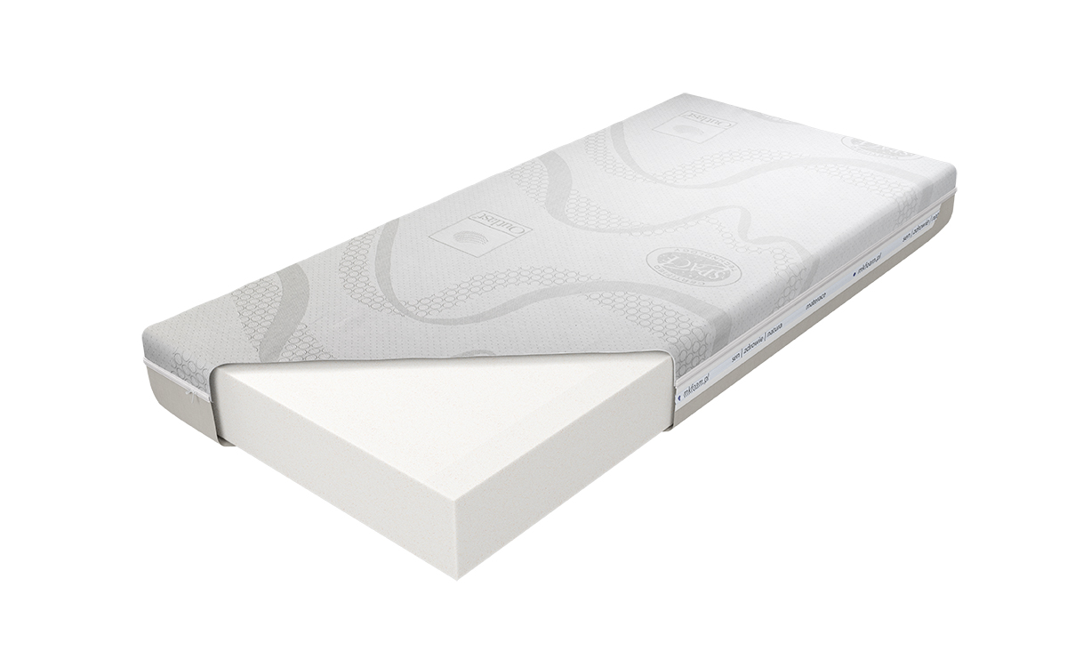 “Dedykowany sportowcom i osobom prowadzącym aktywny tryb życia, komfortowy materac wspomagający naturalny proces regeneracji sił po intensywnym wysiłku. Materac o wysokości wkładu ok. 18 cm wykonany jest z pianki lateksoidalnej posiadającej dużą elastyczność punktową, dzięki której idealnie dopasowuje się do budowy anatomicznej użytkownika, stanowiąc optymalną podporę dla kręgosłupa. Odczucia związane z użytkowania tego produktu porównać można do doznań towarzyszących wypoczynkowi na materacu wodnym. Nie gromadzi roztoczy, jest polecany dla alergików. Utrzymaniu higieny służy zamek błyskawiczny, umożliwiający zdjęcie i wypranie pokrowca. “