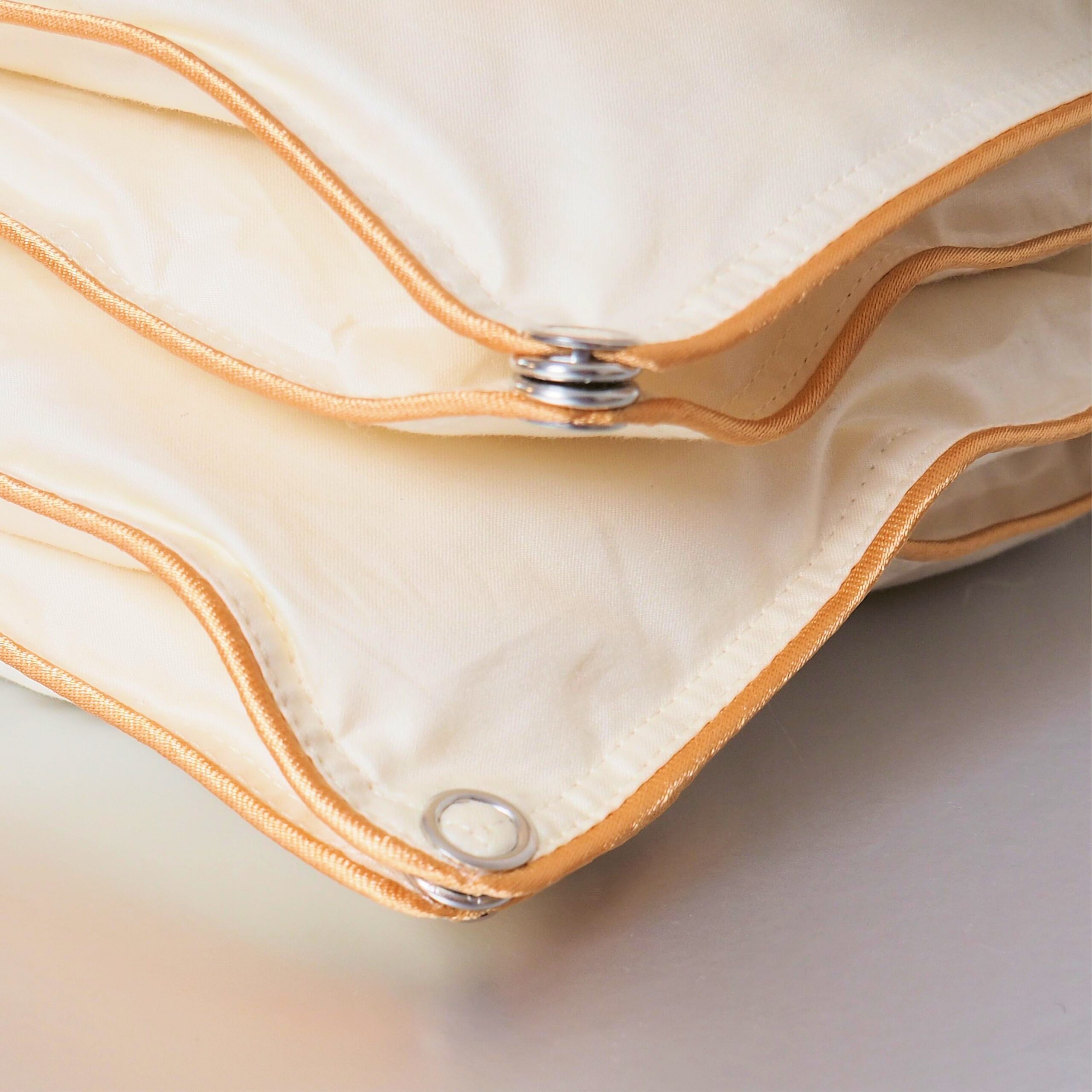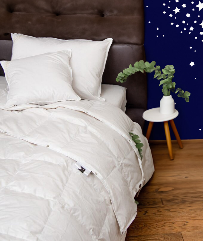 Całoroczna, delikatnie otulająca kołdra typu 4 PORY ROKU. Są to dwie spinane ze sobą kołdry, z których jedna jest kołdrą letnią, a druga to kołdra wiosenna – po ich spięciu napami otrzymujemy bardzo ciepłą kołdrę zimową. Wypełniona wysokiej jakości gęsim puchem o wysokiej wyporności. Jest to polski produkt, uszyty z dbałością o najmniejszy detal. Wyrób naturalny, zbudowany z jakościowych surowców, które zapewniają odpowiednią cyrkulację powietrza oraz optymalny poziom wilgotności.