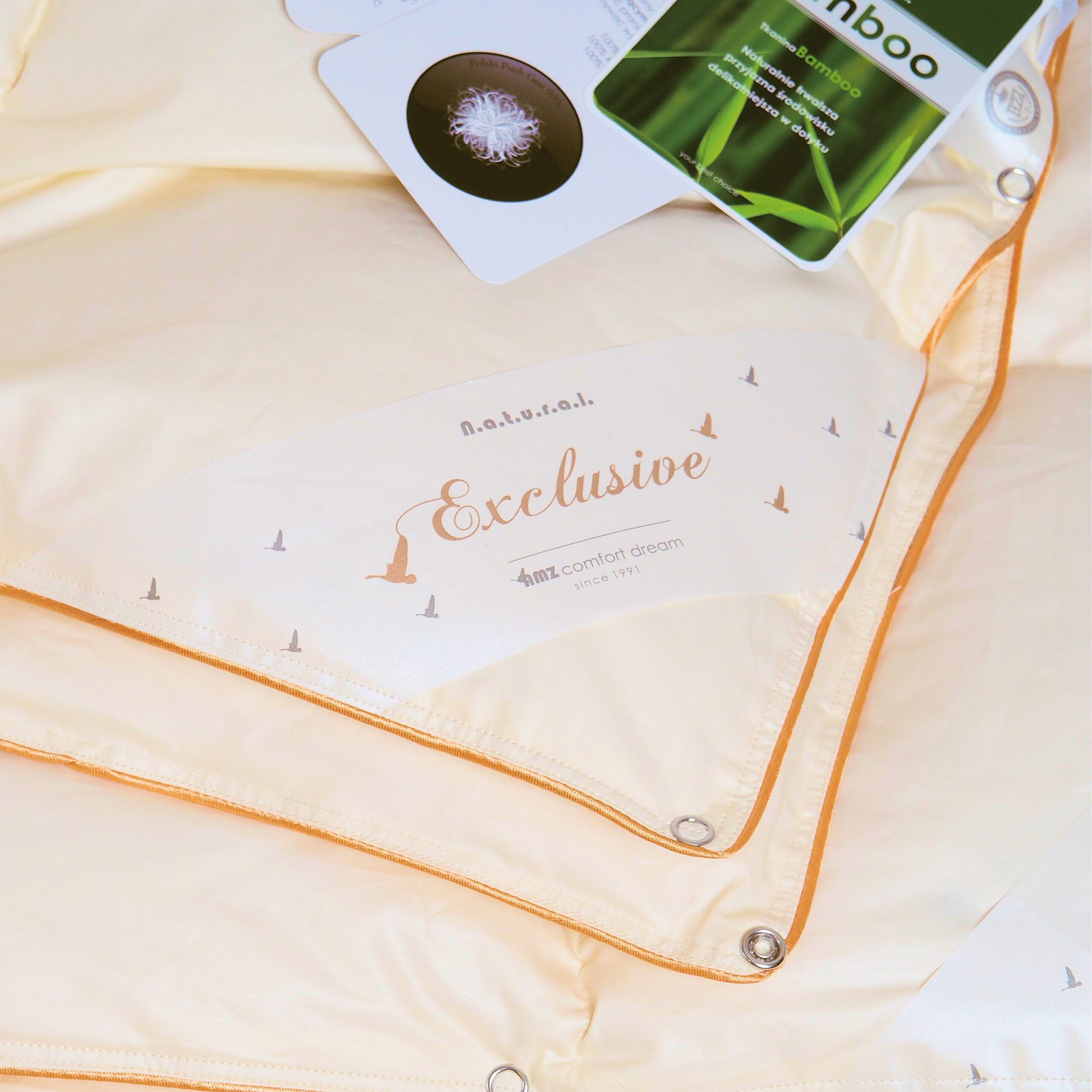 - Wypełnienie: naturalne – 90% polski gęsi puch o wyporności 700 cuin oraz 10% miękkich, drobnych piórek puchowych