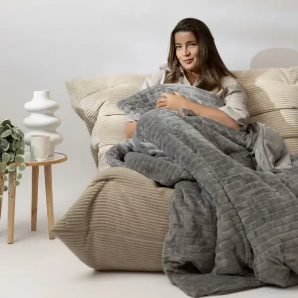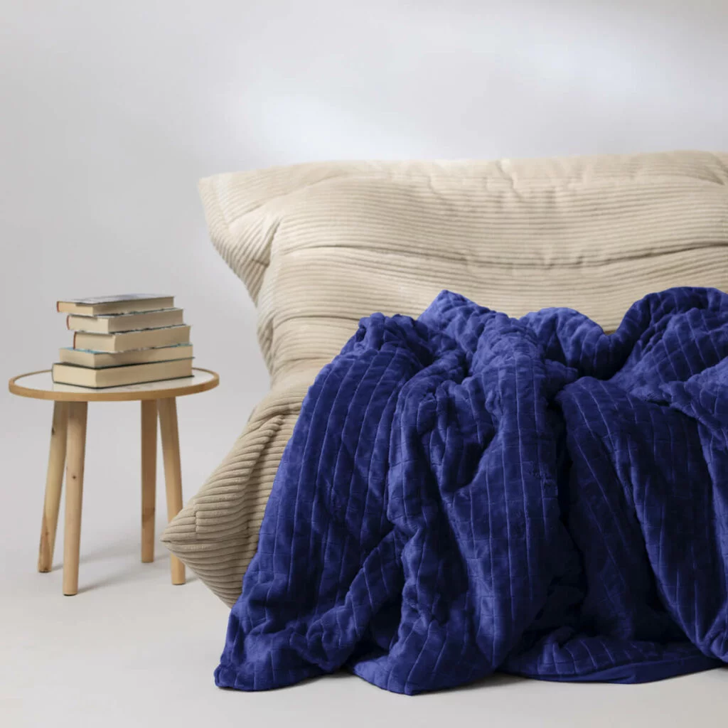 Obciążenie zapewnia przyjemne i pielęgnujące uczucie dobrego samopoczucia. Nacisk kołdry jest równomiernie rozłożony na całym ciele. Możesz teraz spokojnie zasnąć lub usiąść cicho i relaksować się na kanapie. Kołdra sprawia, że