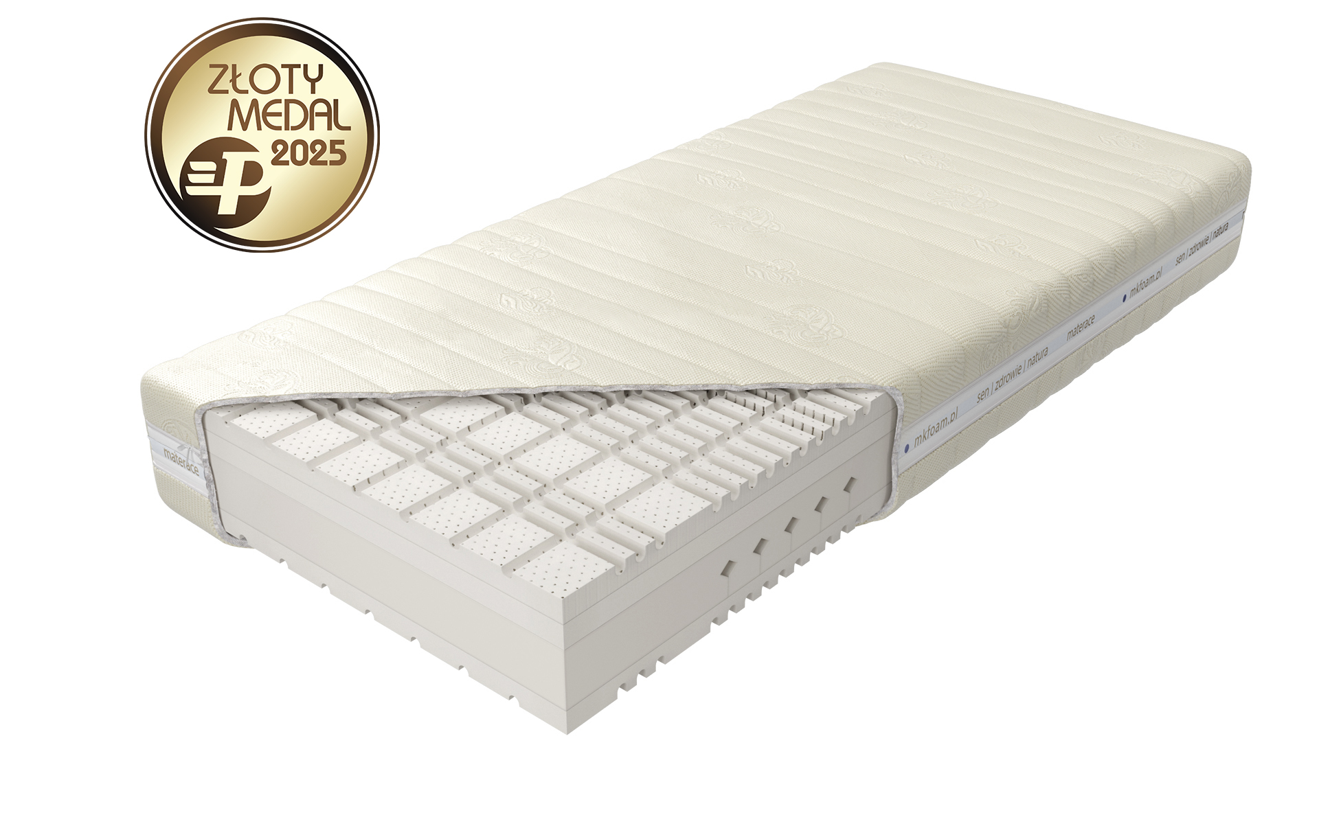 Materac posiada siedem stref twardości utrzymujących poszczególne części ciała (głowę, kręgosłup piersiowy, lędźwie, miednicę, uda, łydki, stopy) w położeniu dopasowanym do budowy anatomicznej.