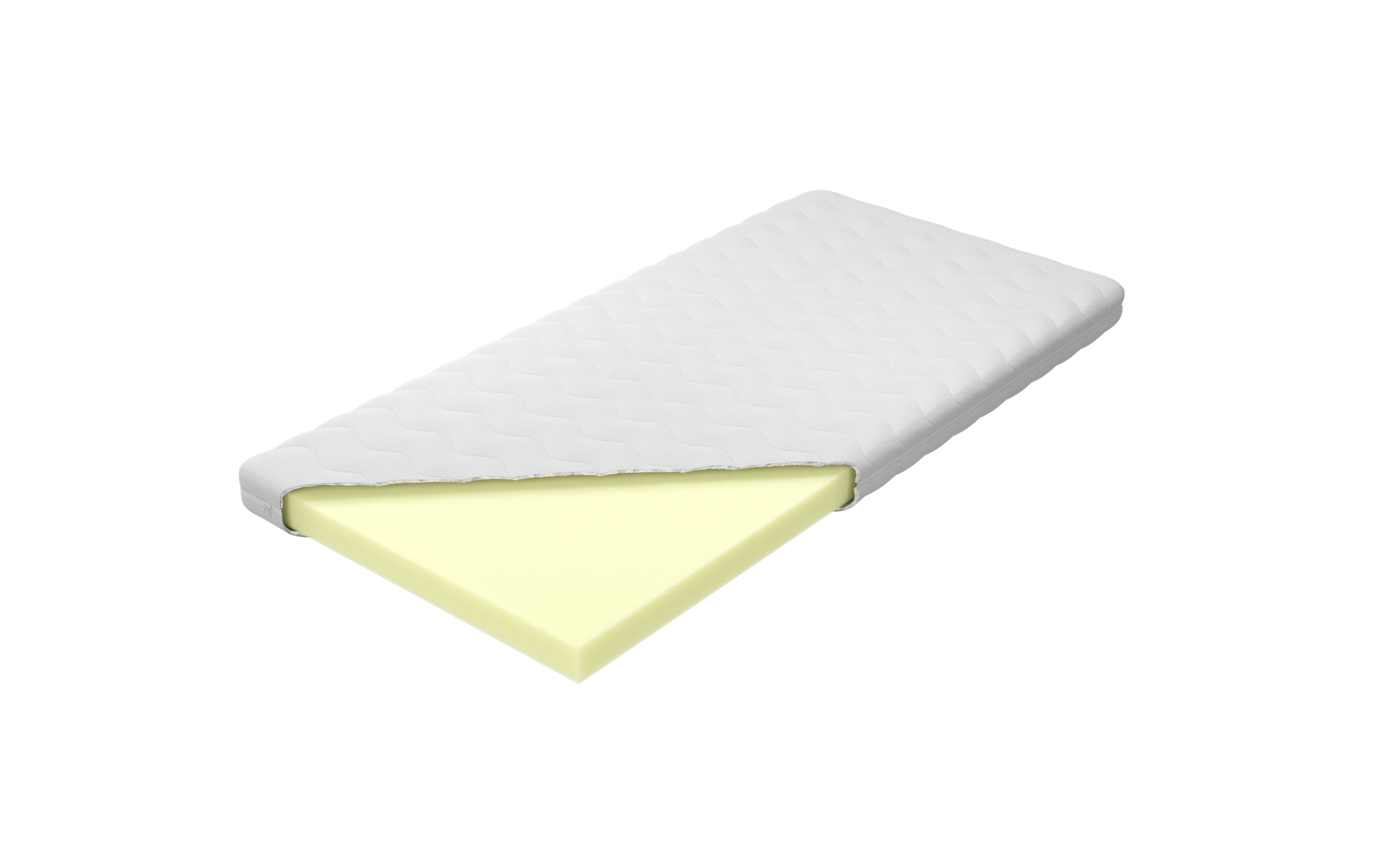 “Materac dedykowany dzieciom z wkładem o wysokości ok. 6 cm zbudowany jest ze sprężystej, wysokoelastycznej pianki Kaltschaum, która dopasowuje się do kształtu ciała. Zapewnia optymalne podparcie dla kręgosłupa. Materac wyposażony jest w zamek błyskawiczny umożliwiający zdjęcie i wypranie pokrowca.”