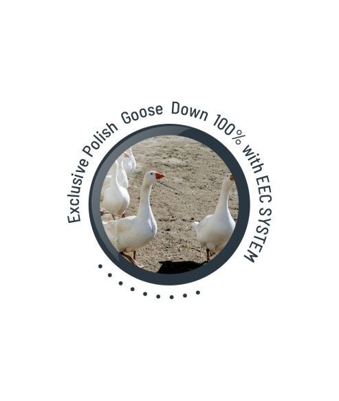 - Wypełnienie: naturalne – 100% polski gęsi puch o wyporności 800 cuin