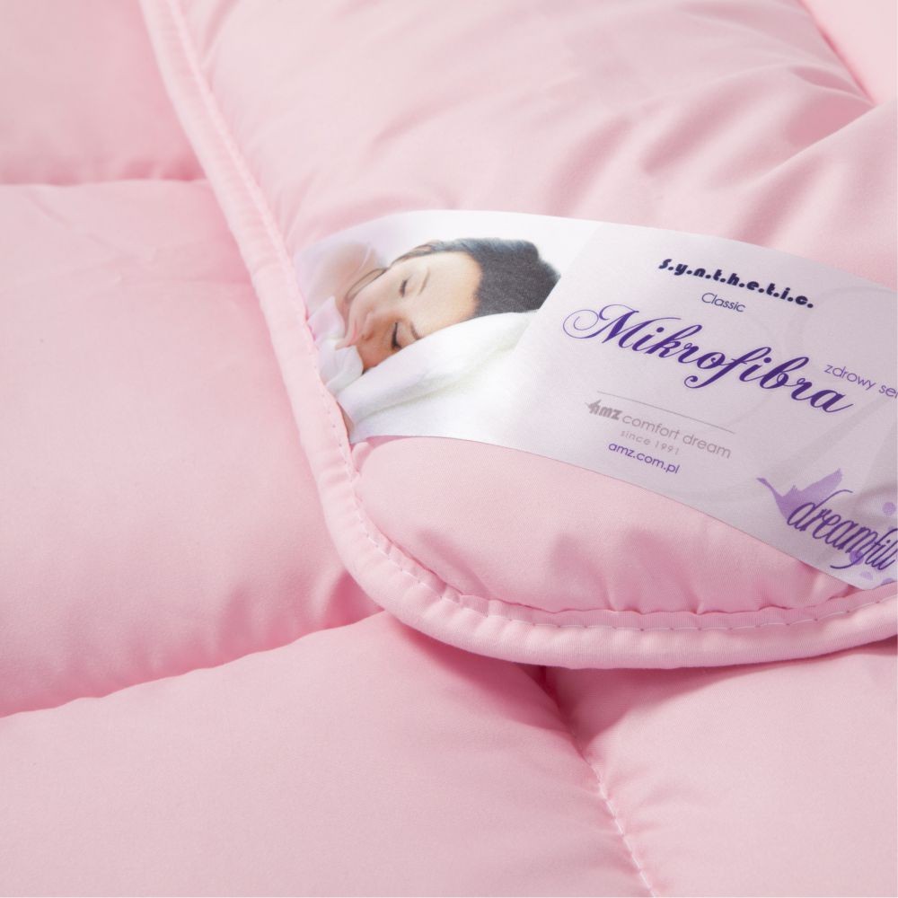 Poduszka wypełniona zwiększoną ilością materiału DreamFill – z drobnych spiralnie skręconych włókien poliestrowych pokrytych silikonem, dzięki czemu są bardziej puszyste oraz dłużej zachowują swój pierwotny kształt. Włókno posiada bardzo dobry współczynnik termoizolacji, zapewniając ciepło przy zachowaniu niskiej wagi wyrobu. Optymalna cyrkulacja powietrza pozwala ciału oddychać i optymalizować temperaturę podczas snu. Zastosowany materiał pokryciowy ma wyjątkowe właściwości – jego włókno jest wielokrotnie cieńsze od jedwabiu, dzięki czemu tkanina jest bardzo gładka, delikatna i trwała. Mikrofibra to tkanina oddychająca, doskonale filtruje powietrze i nie pozwala na przegrzanie organizmu. Wierzch materiału pokrywa przyjemny w dotyku delikatny meszek, utrzymujący wyroby we właściwym miejscu w poszewce. Certyfikowany produkt medyczny.