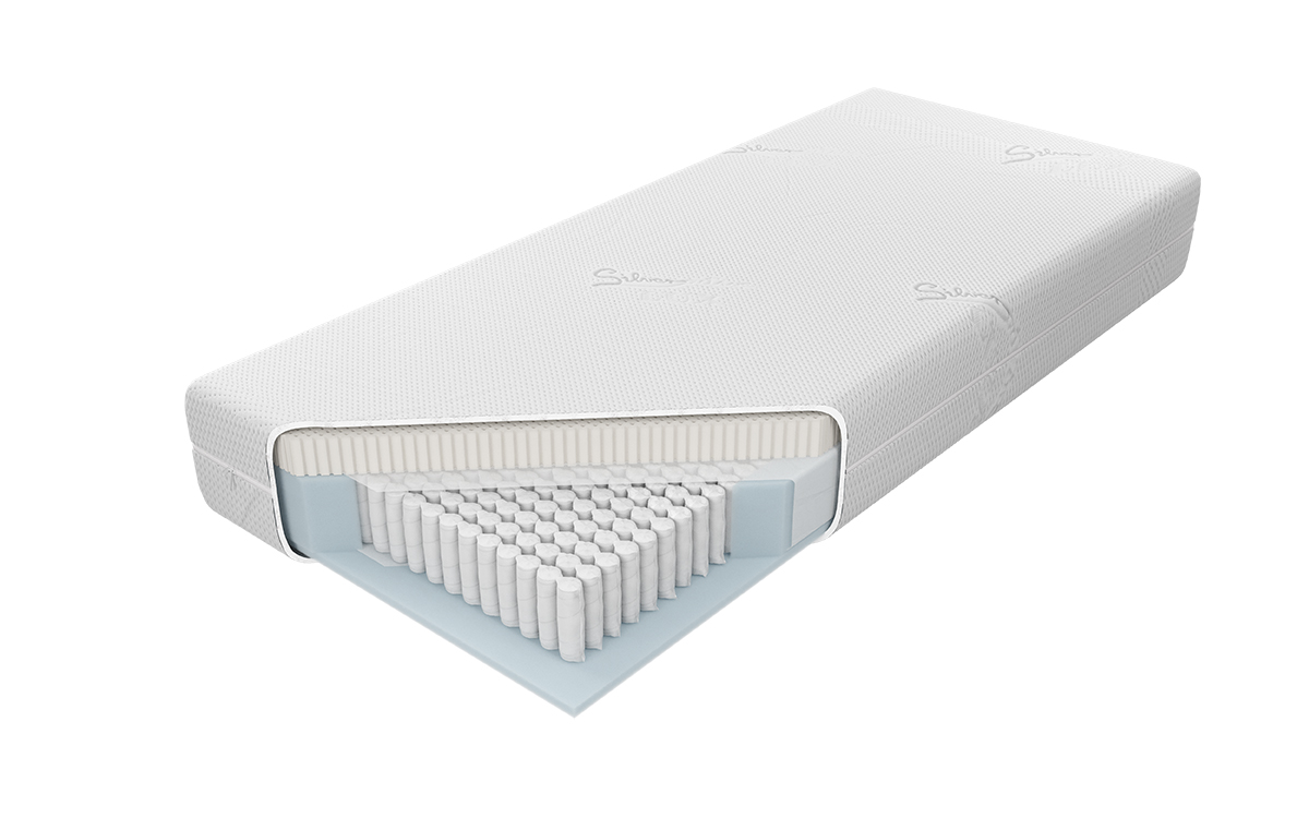 “Wkład materaca wynosi ok. 22 cm. Materac amortyzuje ok. 482 bezgłośnych sprężyn H3 w każdym metrze kwadratowym powierzchni, zbudowanych z wysokogatunkowego drutu, umieszczonych w pojedynczych kieszonkach. Takie rozwiązanie poprawia elastyczność i zwiększa punktowe podparcie ciała. Z jednej strony zastosowana została 7 cm warstwa produkowanego na bazie naturalnego mleczka kauczukowego lateksu Talalay Natural. Jego otwartokomórkowa struktura przyczynia się do doskonałej wentylacji i cyrkulacji powietrza. Zapewnia komfort i optymalne podparcie głowy, szyi i ramion. Drugą stronę stanowi 2 cm warstwa wytrzymałej, nie odkształcającej się, elastycznej pianki poliuretanowej. Materac rekomendowany jest dla osób o dużej wadze. Utrzymaniu higieny służy zamek błyskawiczny, umożliwiający zdjęcie i wypranie pokrowca. Produkt jest zgodny z wytycznymi Cradle to Cradle Certified ™. Jakość użytych tekstyliów mających kontakt ze skórą potwierdza Certyfikat Oeco-Tex.”