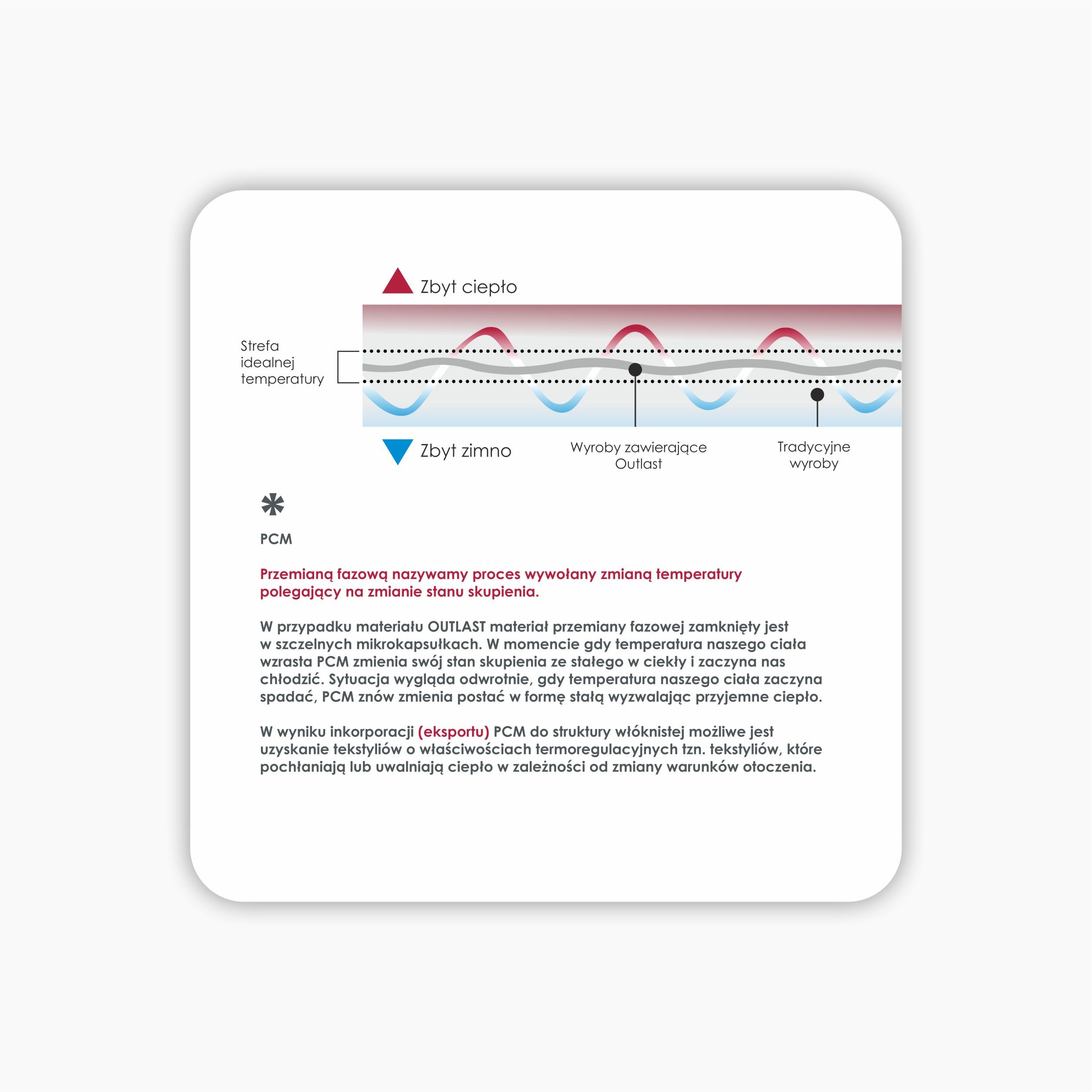- Pokrycie: delikatny inlet – 64% bawełna, 36% OUTLAST – o gramaturze 110g/m2