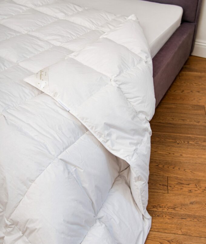 Całoroczna, uniwersalna kołdra. Wypełniona 85% naturalnym puchem gęsim. Pozostałe 15% to miękkie, drobne piórka puchowe. Kołdra pokryta jest inletem bawełnianym. Jest to polski produkt, uszyty z dbałością o najmniejszy detal. Wyrób naturalny, zbudowany z jakościowych surowców, które zapewniają odpowiednią cyrkulację powietrza oraz optymalny poziom wilgotności.