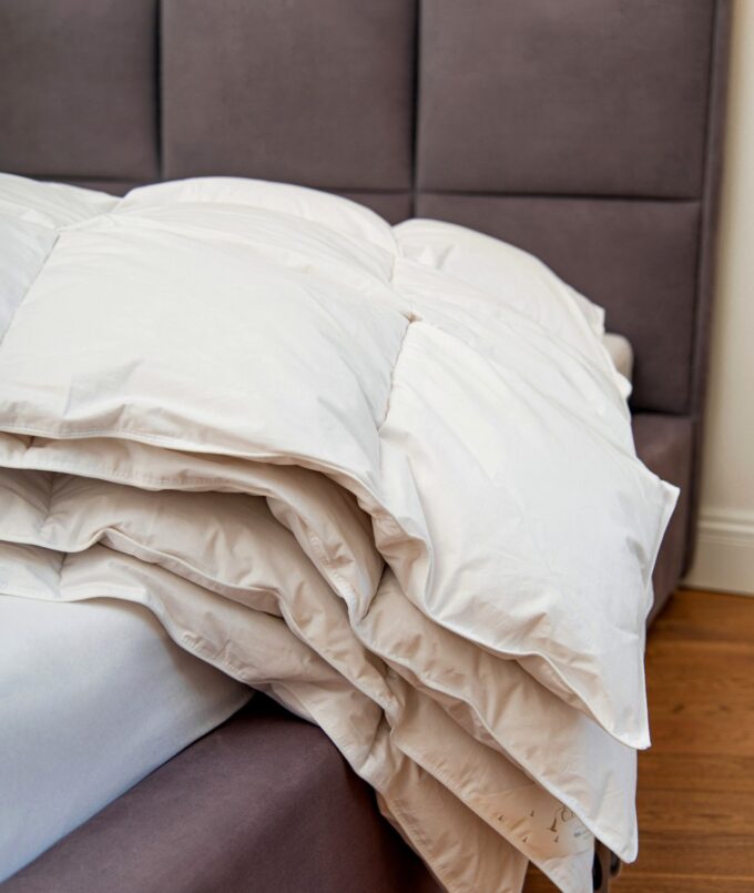 Wyjątkowo ciepła kołdra zimowa. Wypełniona 85% naturalnym puchem gęsim. Pozostałe 15% to miękkie, drobne piórka puchowe. Kołdra pokryta jest inletem bawełnianym. Jest to polski produkt, uszyty z dbałością o najmniejszy detal. Wyrób naturalny, zbudowany z jakościowych surowców, które zapewniają odpowiednią cyrkulację powietrza oraz optymalny poziom wilgotności.