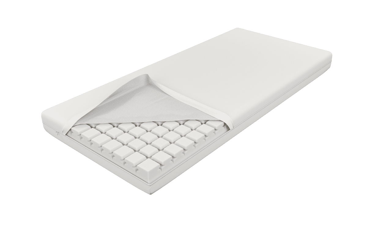 “Znajdujący zastosowanie w warunkach szpitalnych ok. 14-cm materac zbudowany jest z wytrzymałej, nie odkształcającej się, elastycznej pianki poliuretanowej o wewnętrznej strukturze pozwalającej na swobodny przepływ powietrza. Zachowanie produktu w czystości i higienie umożliwia zamek błyskawiczny pozwalający na zdjęcie i wypranie pokrowca.”