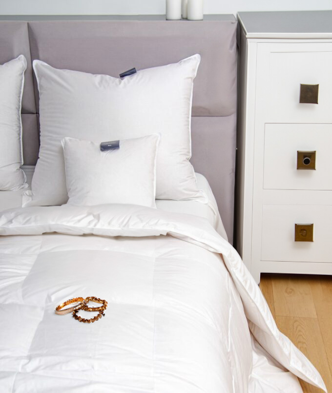 - Wypełnienie: naturalne – 100% syberyjski gęsi puch o wyporności 850+ cuin