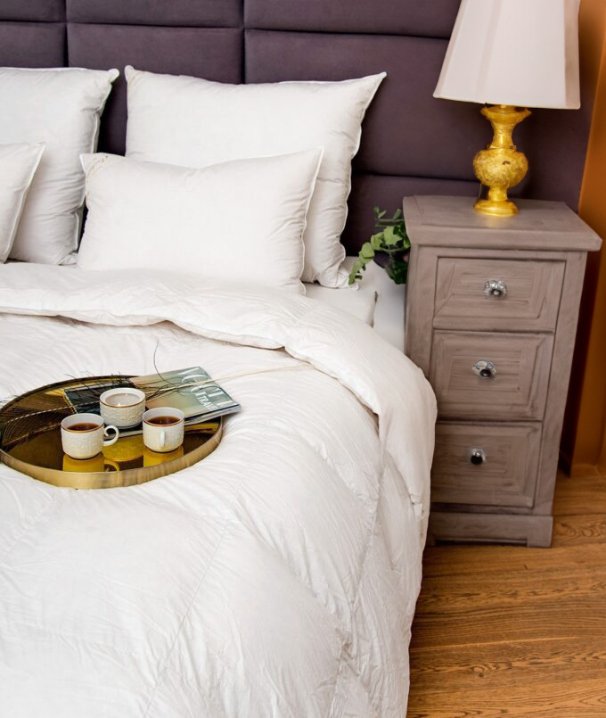 • Wypełnienie: naturalne – polski gęsi puch 100% eksportowy o wyporności 850 cuin