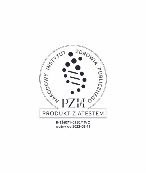 Produkt z atestem PZH wydanym przez Narodowy Instytut Zdrowia Publicznego.