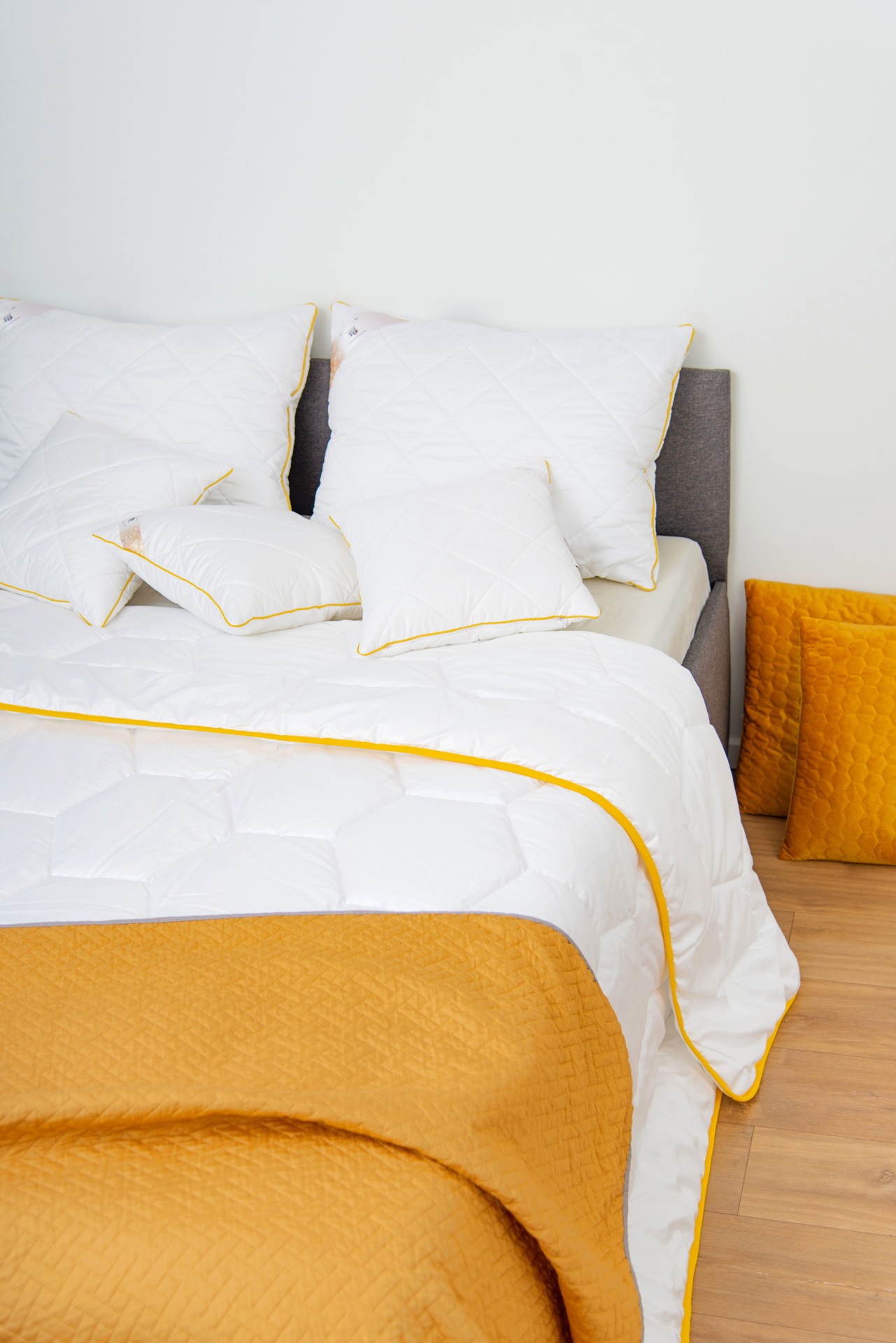 Kołdra pikowana na nowoczesnych maszynach, gwarantujących równomierne rozłożenie wypełnienia. Produkt starannie wykończony, wyprodukowany z najwyższej jakości materiałów. Zapewnia odpowiednią cyrkulację powietrza oraz optymalny poziom wilgotności, a więc niesprzyjające warunki do rozwoju roztoczy oraz innych drobnoustrojów.