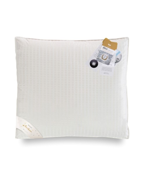 Poduszka jest trzykomorowa, co przekłada się na większą wysokość. Nowoczesna konstrukcja sprawia, że wypełnienie nie ucieka na boki. Wykończona bizą w kolorze kremowym.