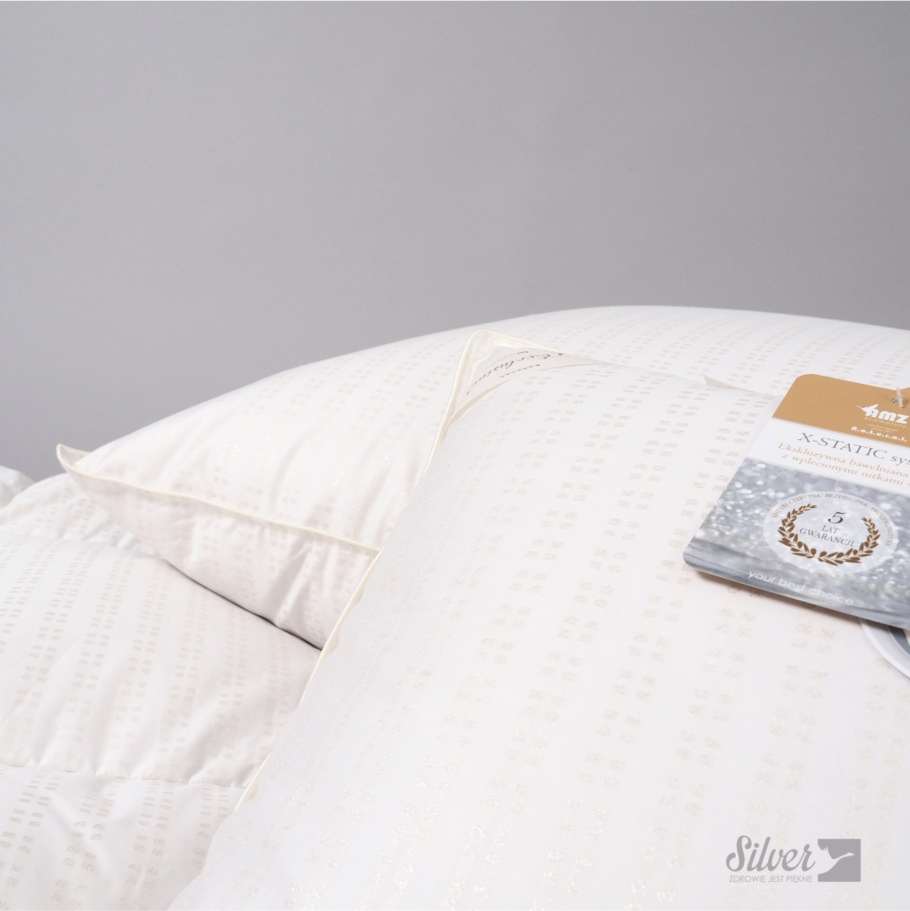 • Pokrycie: delikatna tkanina – 85% bawełnianej satyny i 15% materiału lurex SILVER, o właściwościach antybakteryjnych i antyzapachowych