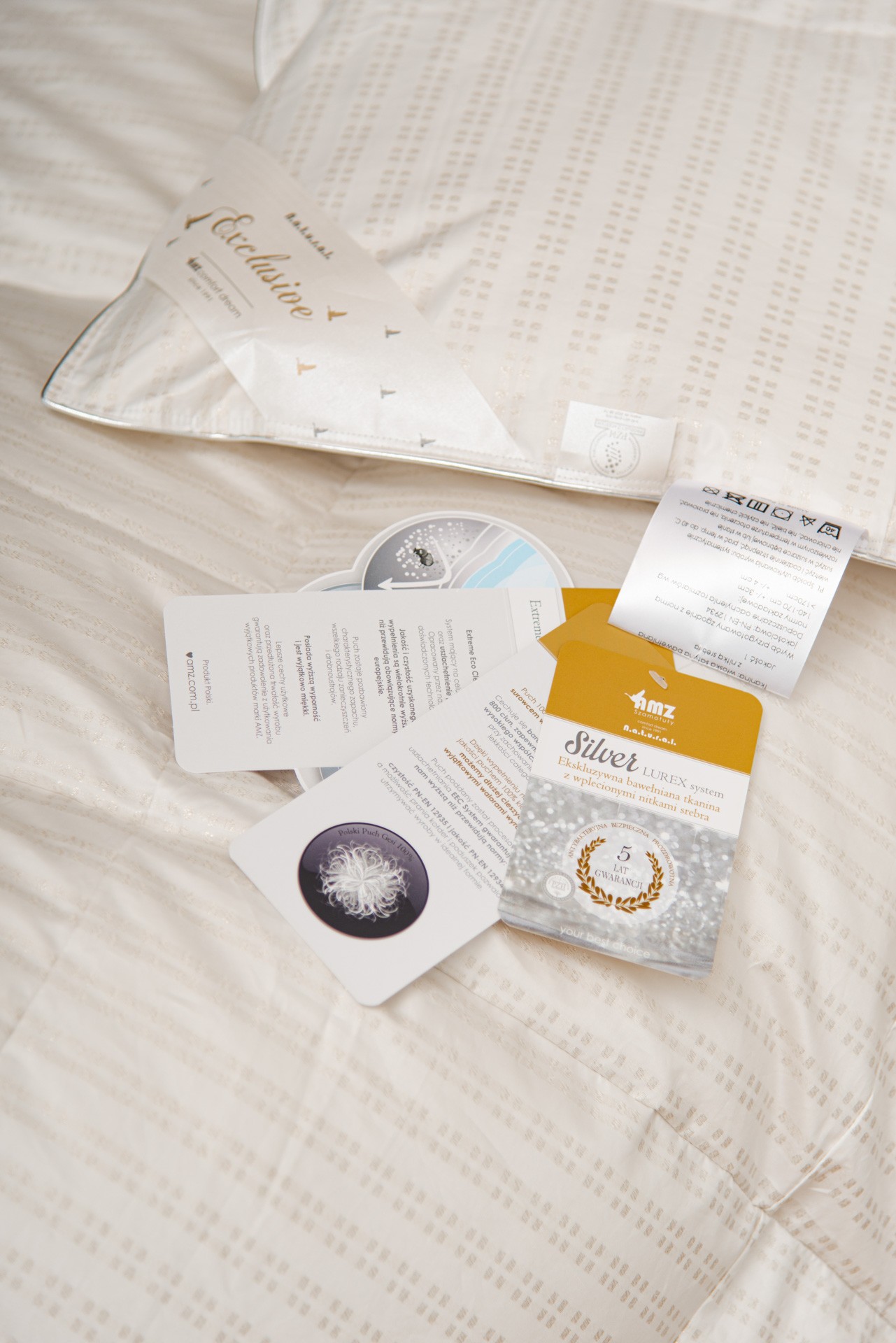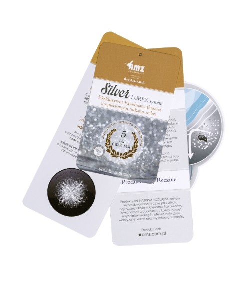 - Pokrycie: delikatna tkanina – 85% bawełnianej satyny i 15% materiału lurex SILVER, o właściwościach antybakteryjnych i antyzapachowych