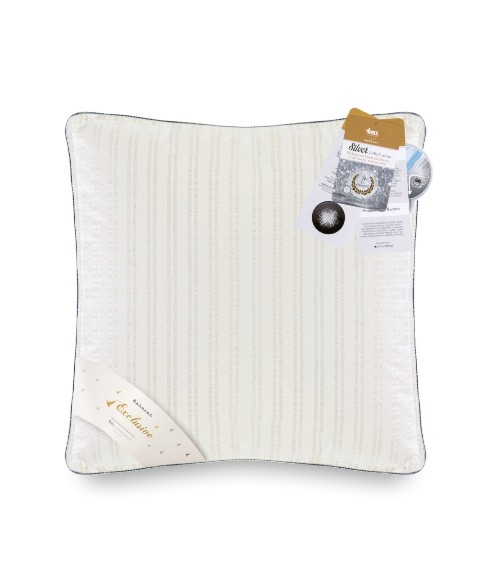 Poduszka jest jednokomorowa, co przekłada się na umiarkowaną wysokość. Wykończona bizą w kolorze srebrnym.