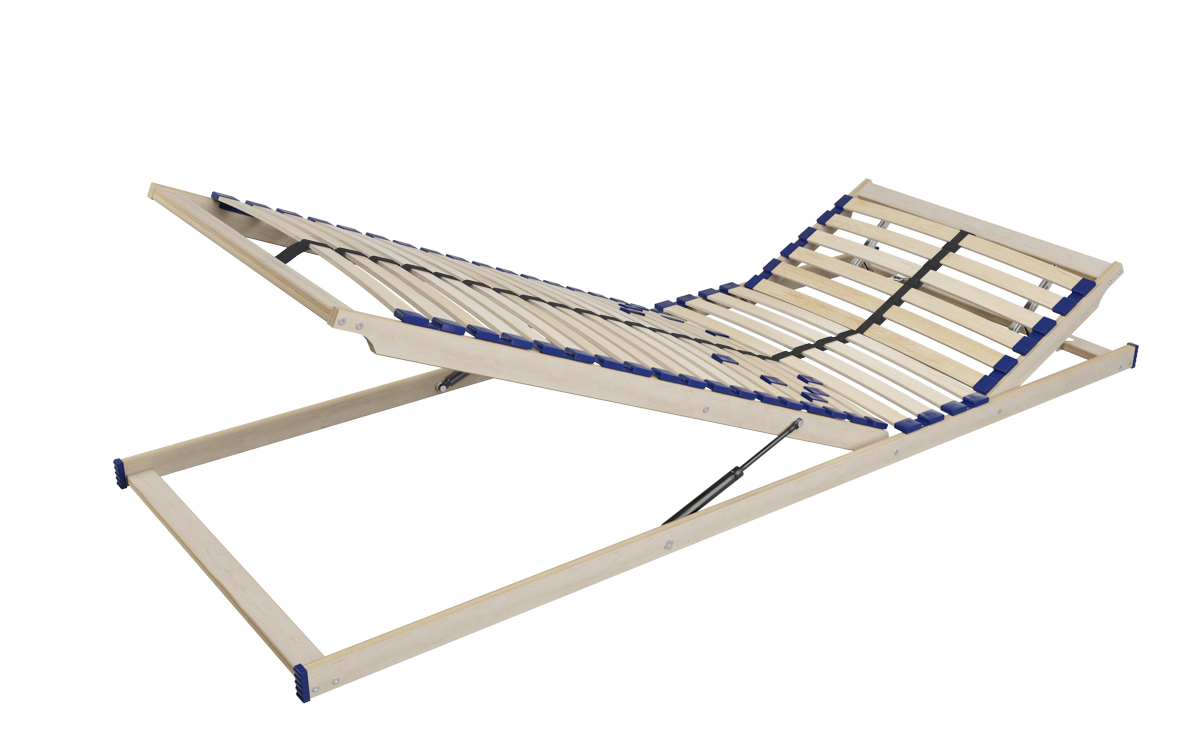 Ten stelaż do łóżka z pojemnikiem do przechowywania pościeli jest funkcjonalnym rozwiązaniem, stosowanym przy łóżkach drewnianych lub tapicerowanych, pozwalającym doskonale zagospodarować przestrzeń, jednocześnie zachowującym najważniejsze, prozdrowotne właściwości produktu. Model Duoflex DUO KF Basic Standard tworzy jeden stelaż o klejonych warstwowo bukowych listwach giętych, osadzonych w elastycznych, gumowych uchwytach na ramie stelaża, wzmocnionych pasem dla lepszego rozłożenia ciężaru. Elastyczne listwy powodują, że stelaż z materacem idealnie dopasowują się do kształtu i wagi ciała, zapewniając komfortowy, zdrowy wypoczynek. Stelaż w części środkowej ma dodatkową regulację twardości. Zalecany do wybranych łóżek tapicerowanych. Wyposażony w praktyczny, wygodny mechanizm podnoszenia. Sprzedawany w wersji zmontowanej. Istnieje możliwość zamówienia nietypowego rozmiaru stelaża.