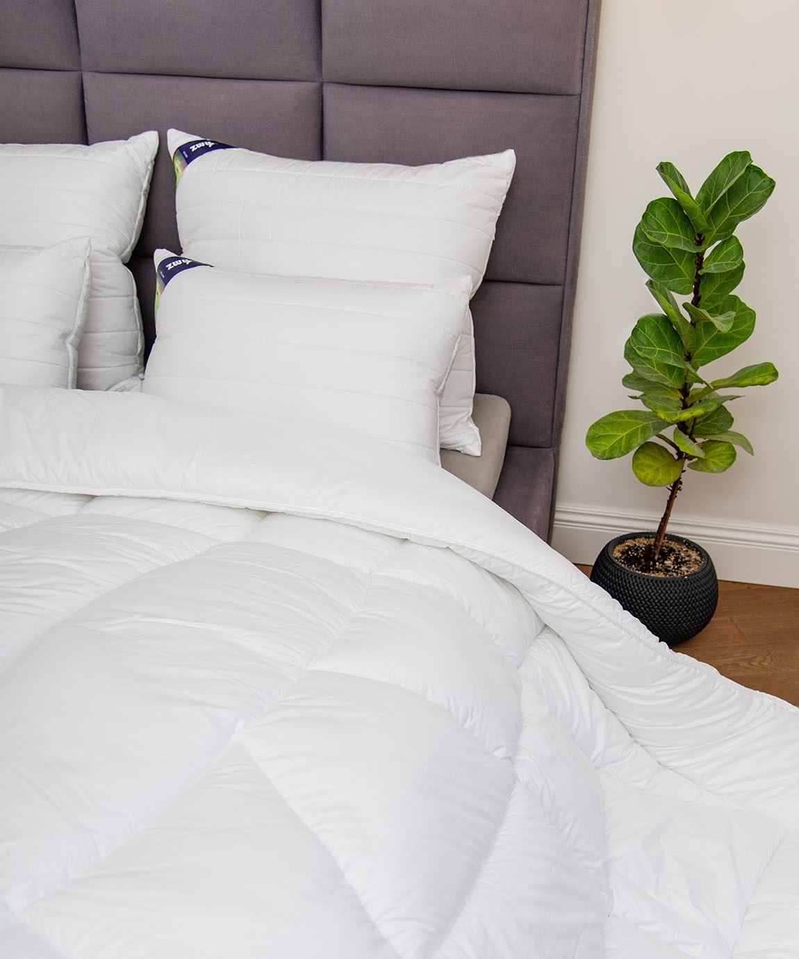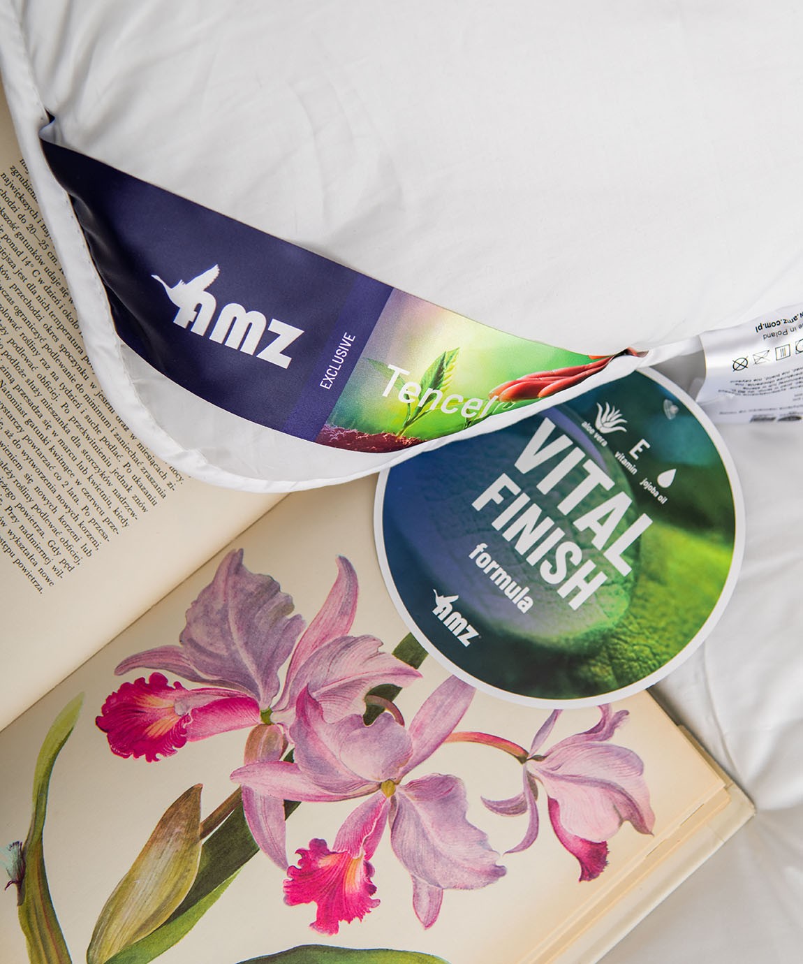 Kołdra całoroczna. Pokryta tkaniną, która łączy korzystne właściwości bawełny i Tencelu, dzięki czemu jest gładka, wytrzymała i przyjazna dla skóry. Dodatek formuły Vital Finish oznacza, że materiał został wzbogacony o naturalne składniki pielęgnacyjne – połączenie witaminy E, aloesu i jojoby – po to, by chronić skórę przed starzeniem i dawać efekt witalizujący. Zastosowano w 100% antyalergiczne i biodegradowalne wypełnienie. Produkt zapewnia spokojny sen nawet wyjątkowo wrażliwym użytkownikom.