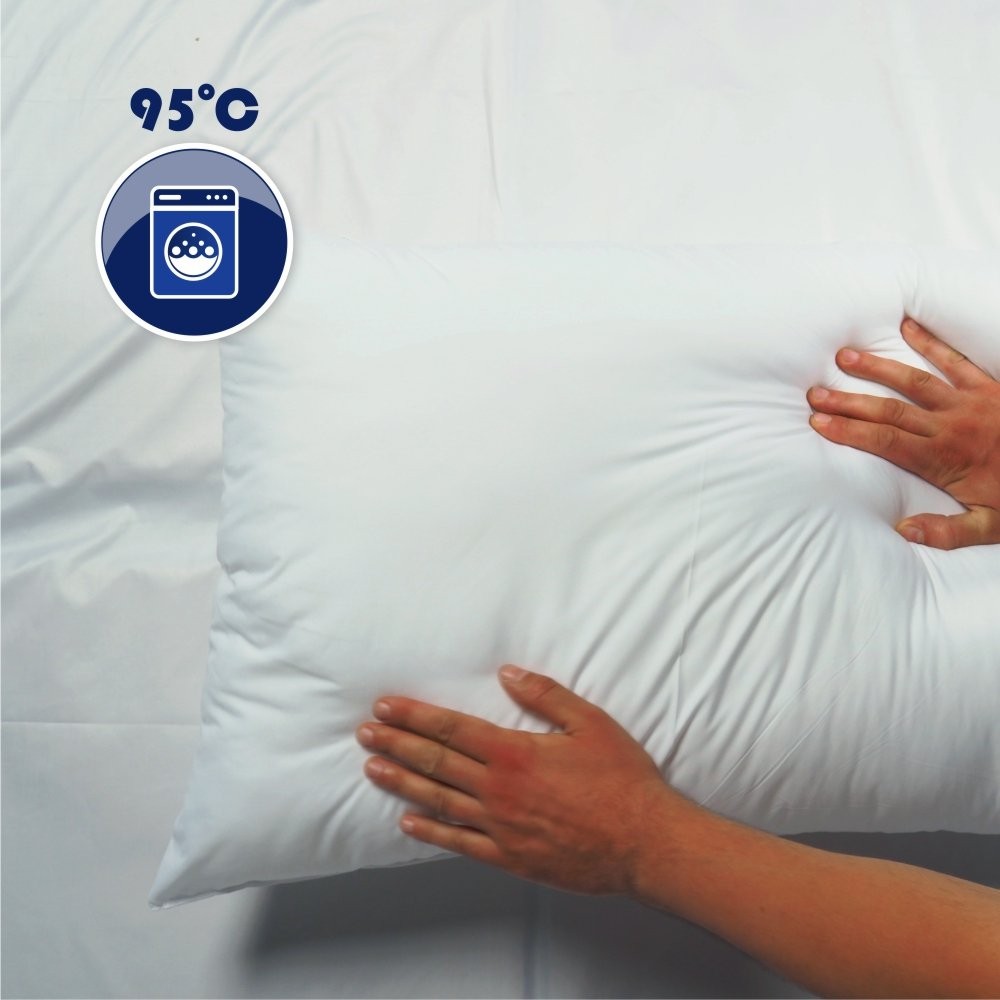 Można prać w pralce w domowych warunkach – nawet w 60°C, co skutecznie eliminuje roztocza oraz inne drobnoustroje. Poduszka bardzo szybko schnie.